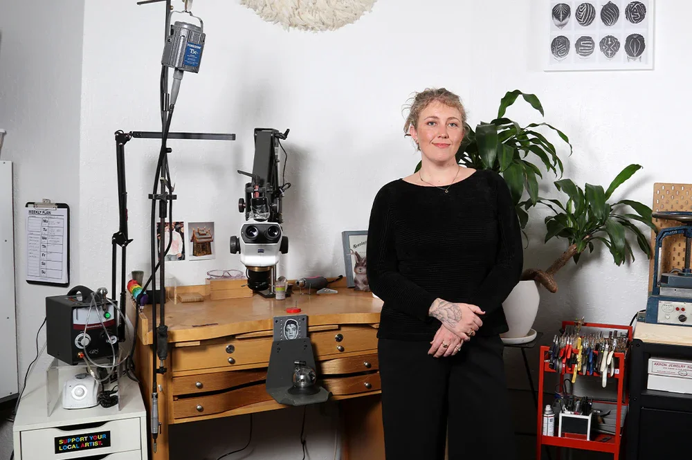 Her custom and bespoke creations marry old-world metalsmithing and setting techniques with the use of modern technology like microscopes and pneumatic engraving machines.
